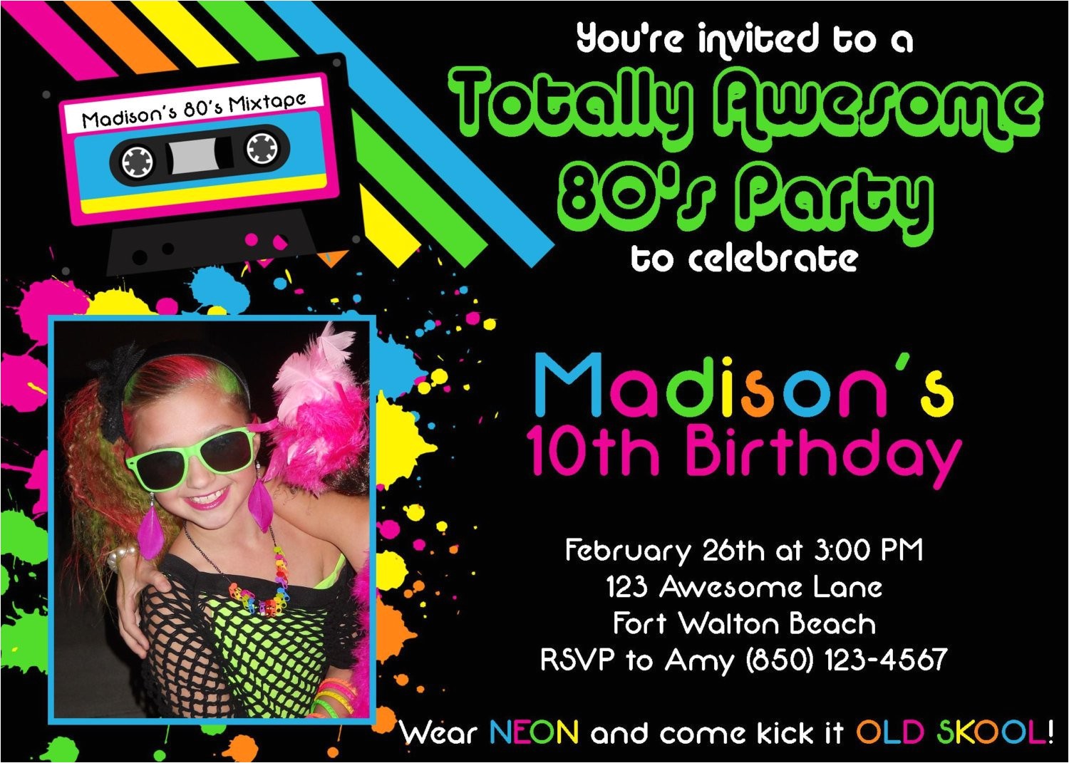 awesome 80 39 s 5×7 party invitation girl birthday from 80s party invite