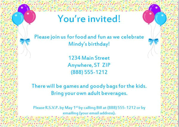 There are millions of ways to word party invitations. choose wording that fits the occasion. The wording should with reflect the personality of the guest of honor. If you are throwing a theme party, use wording combined to the theme. For example, if you are throwing a train theme birthday party for your child, you can use “All aboard for Jacob’s first birthday!” for the intro. Don’t forget the necessary instruction afterward the date, time, and location of the party!