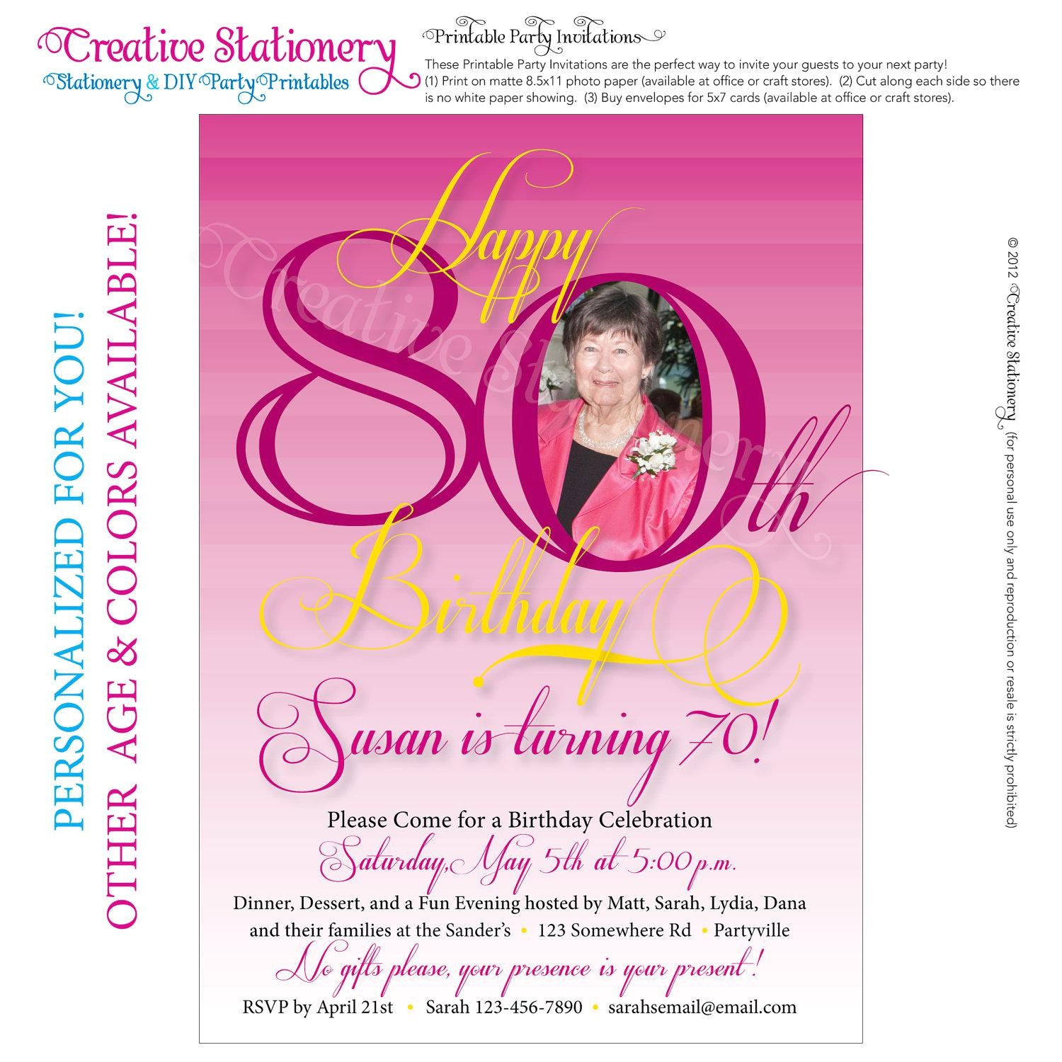 80th Birthday Party Invitations Templates sample: