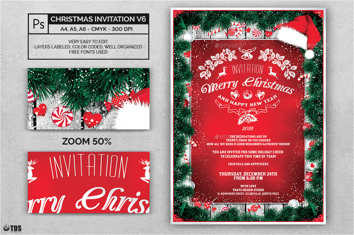 christmas invitation template v6 by lou606 graphicriver from A5 Party Invitation Template
