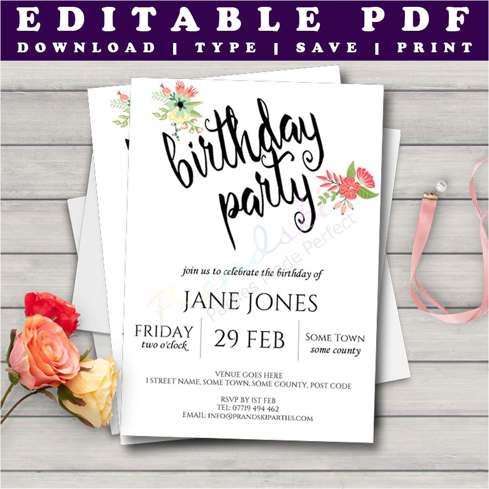 printable birthday invitation template watercolour floral from A5 Party Invitation Template