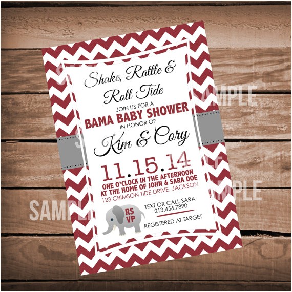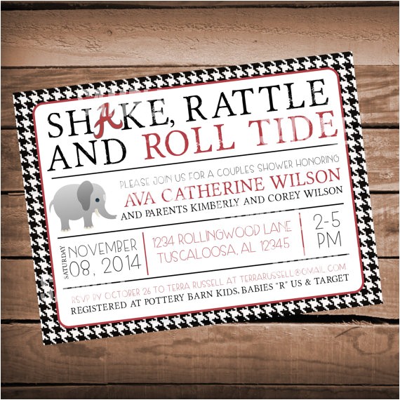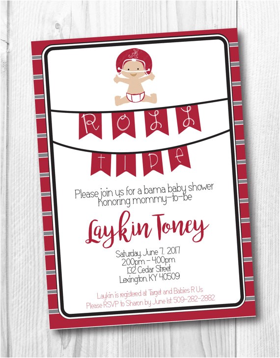 Alabama Baby Shower Invitation Bama Baby Roll Tide from alabama baby shower invitations