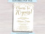 editable 70th birthday party invitation template cheers to from Anniversary Party Invitation Template