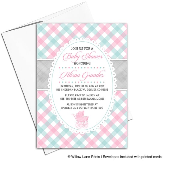 aqua and pink baby shower invitations sample: