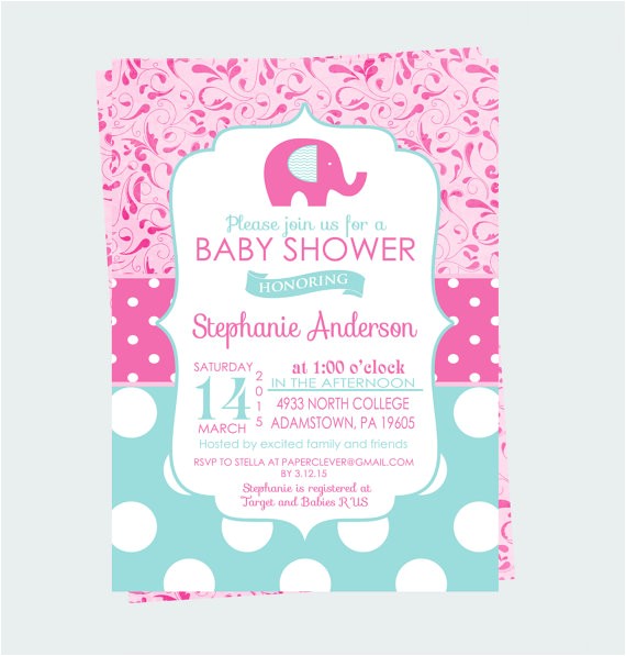 Aqua and Pink Shower Invitations Elephant Baby Girls from aqua and pink baby shower invitations
