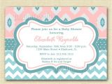 Light Pink and Aqua Ikat and Chevron Baby Shower from aqua and pink baby shower invitations