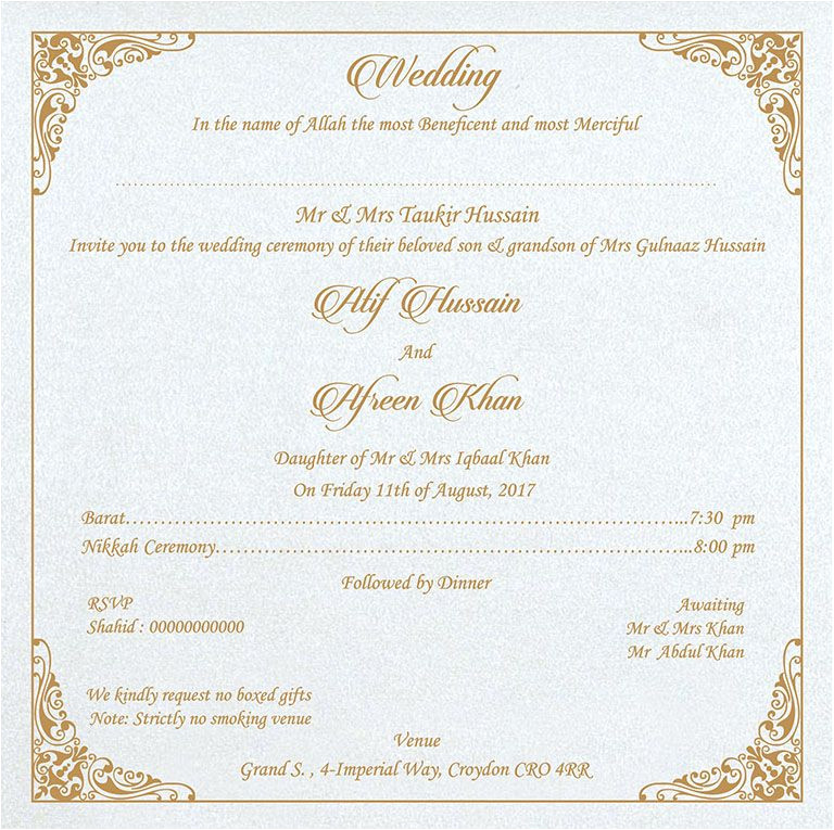 wedding invitation wording for muslim wedding ceremony in from Arabic Wedding Invitation Template