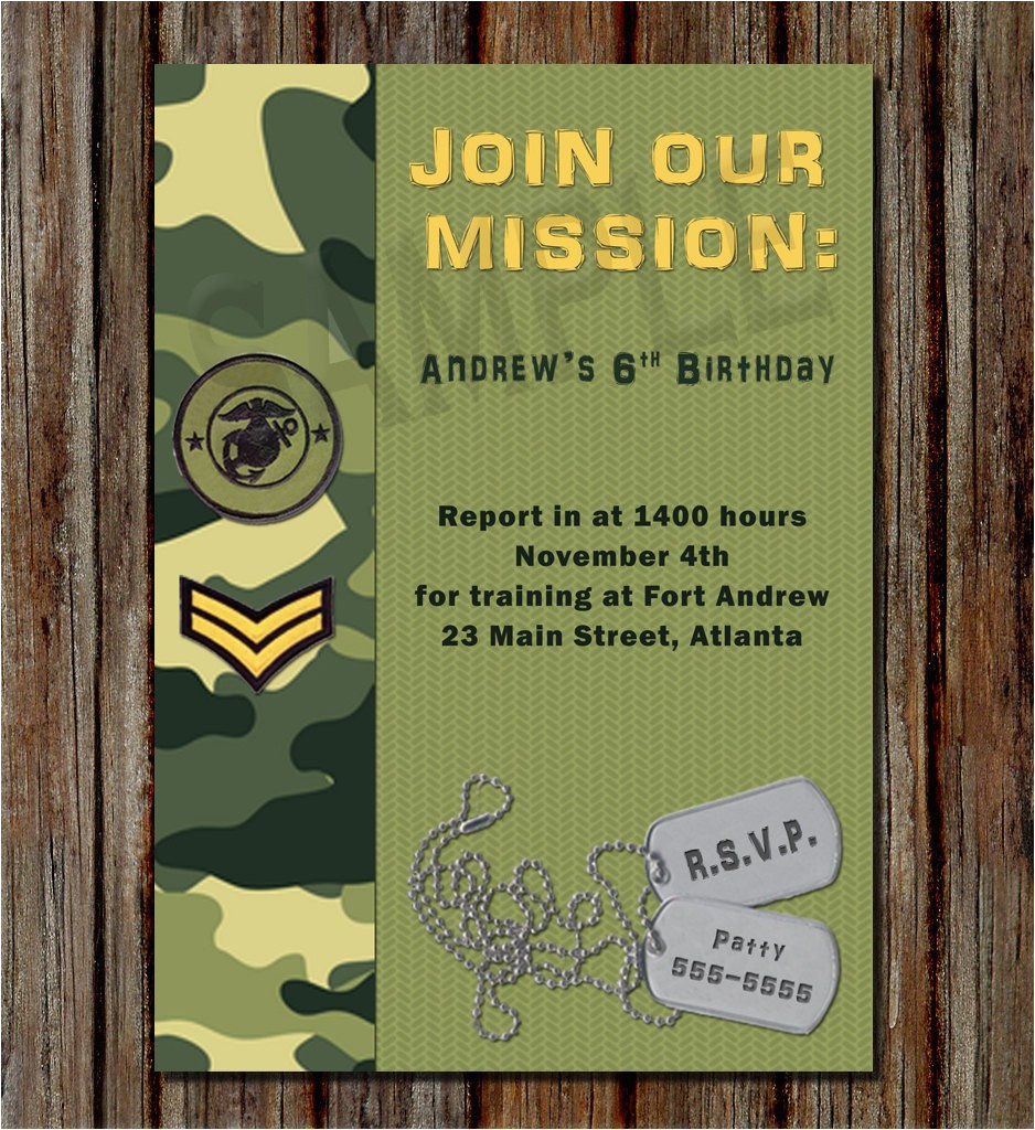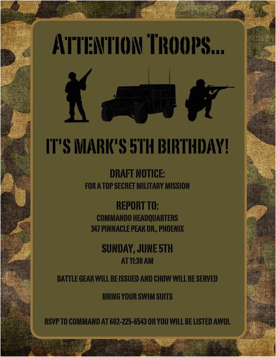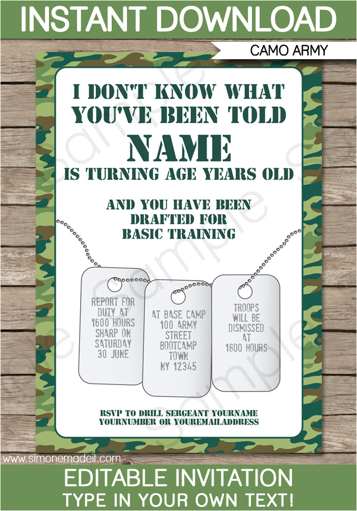 military army personalized printable birthday party invitation from Army Birthday Invitation Template
