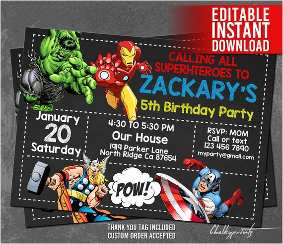 avengers invitation instant download avengers invitations from Avengers Birthday Invitation Template