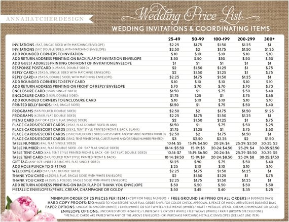 printing price list for wedding invitations by from average cost of printing wedding invitations
