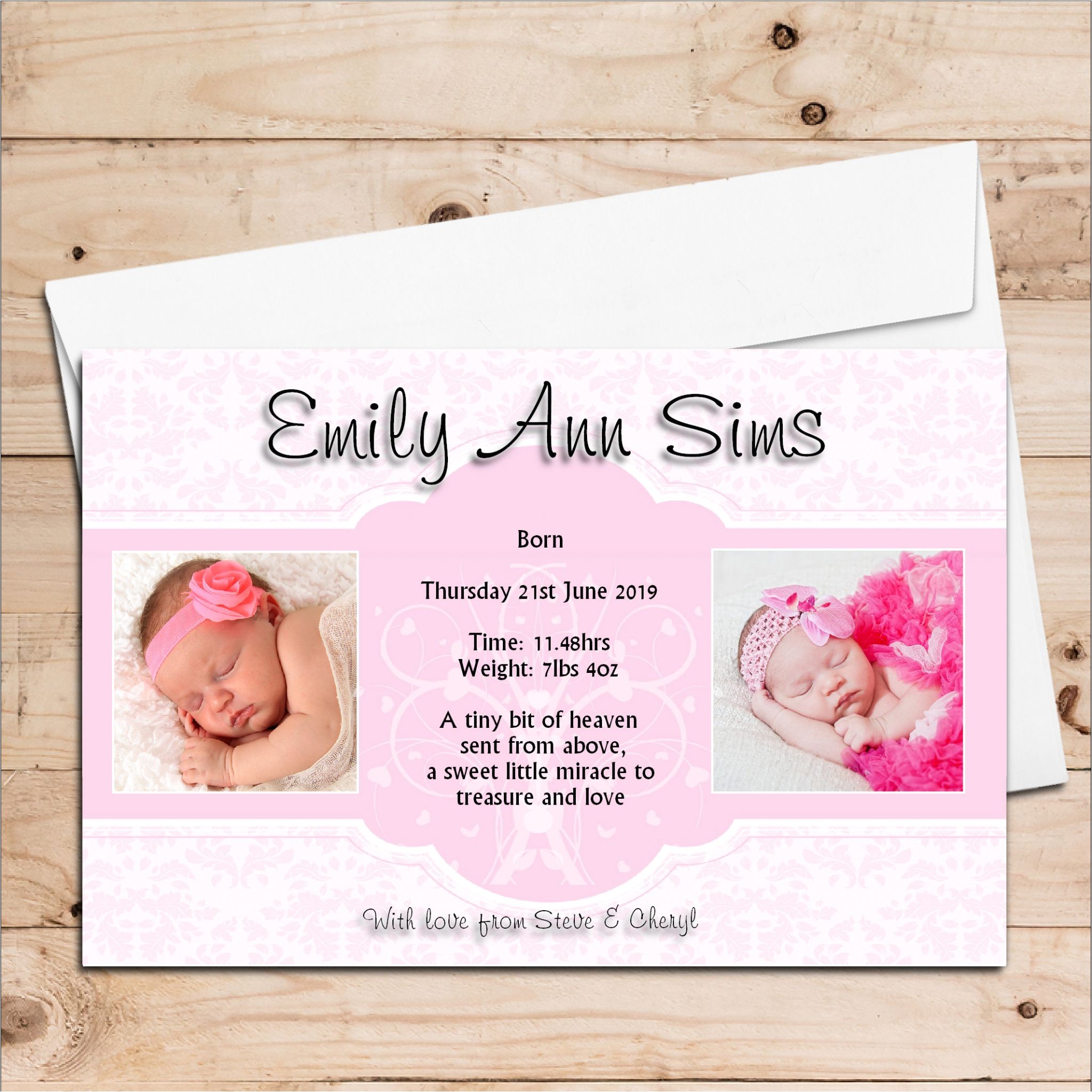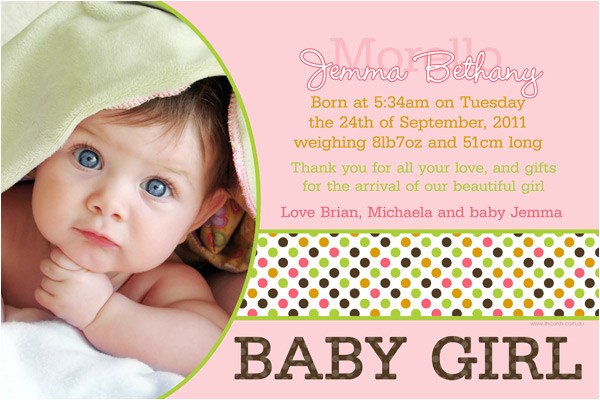 10 Personalised Baby Girl Birth Announcement Thank You from baby birth party invitation