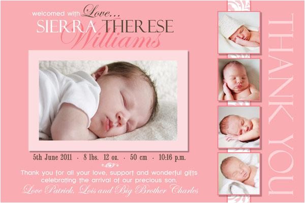 Thank You Cards For Baby Birth Baptism Birthday With from baby birth party invitation