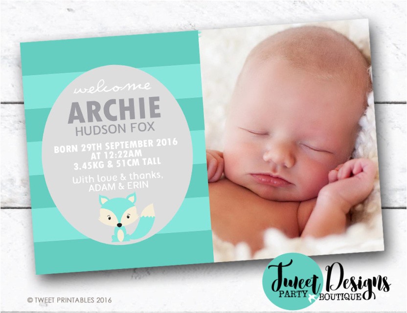 FOX BIRTH ANNOUNCEMENT Boy Birth Announcement Baby Boy from baby boy birth party invitation