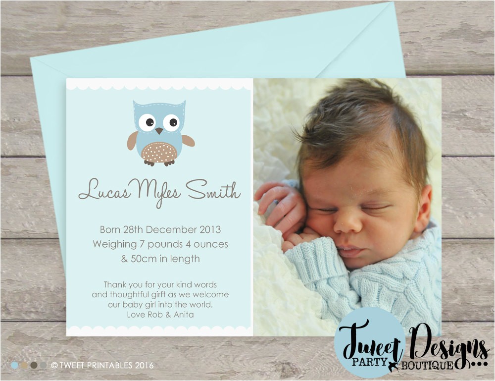 Owl Birth Announcement Baby Boy Thank you Card Cute Owl from baby boy birth party invitation