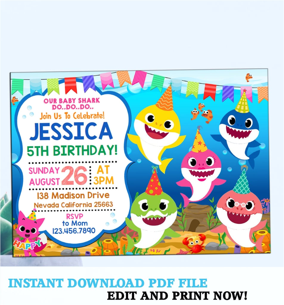 baby shark party invitation baby shark party supplies from Baby Shark Birthday Invitation Template Free Download