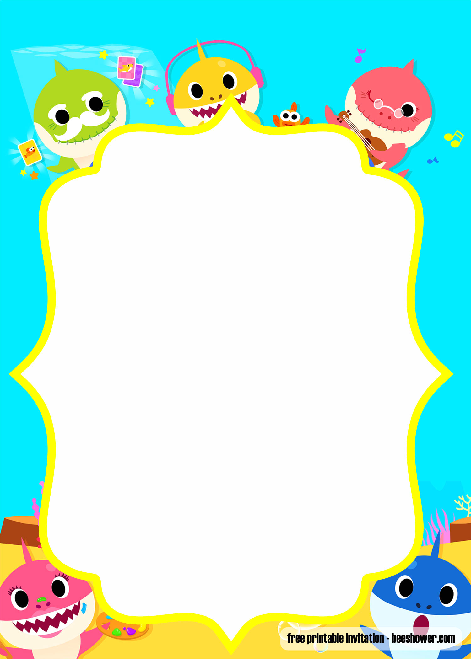 free printable baby shark pinkfong birthday invitation from Baby Shark Birthday Invitation Template Free Download