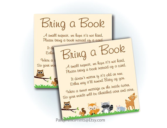 Woodland Baby Shower Bring a Book Instead of a Card from baby shower invitation inserts bring book