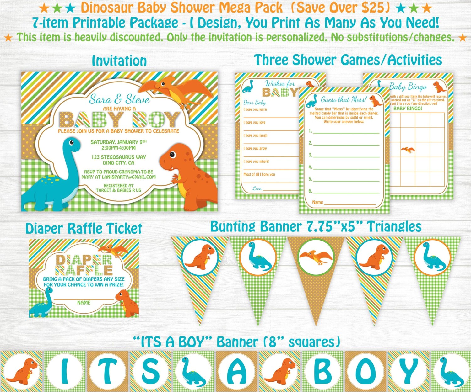 Dinosaur Baby Shower Invitation Package Games Diaper Raffle from baby shower invitation packages