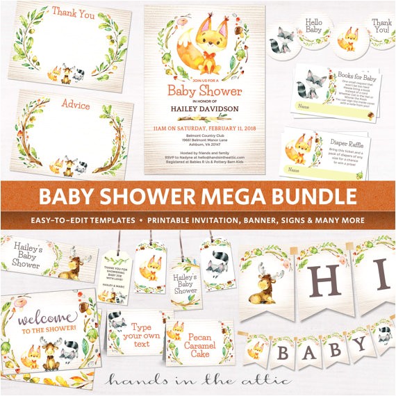 Woodland animals baby shower package party printables from baby shower invitation packages