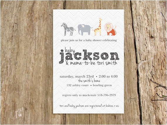 Zoo animals modern baby shower invitation boy or girl from baby shower invitation with baby name