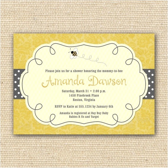 Bee Baby Shower Invitation "Mom to "Bee" Bee Themed from baby shower invitations bumble bee theme