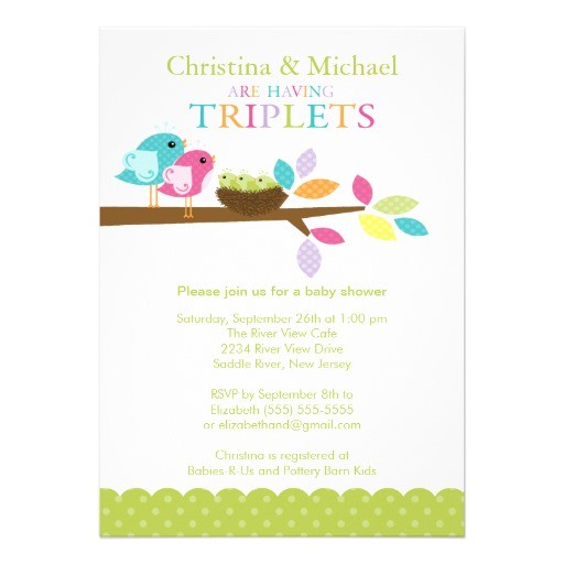Baby Birds Nest Triplets Baby Shower Invitations from baby shower invitations for triplets