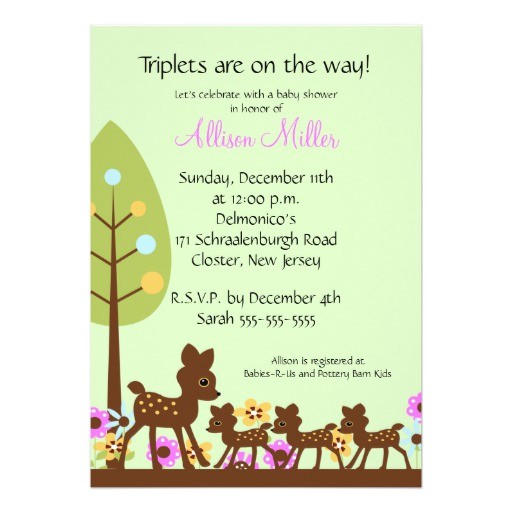Baby Deer TRIPLETS Baby Shower Invitation from baby shower invitations for triplets