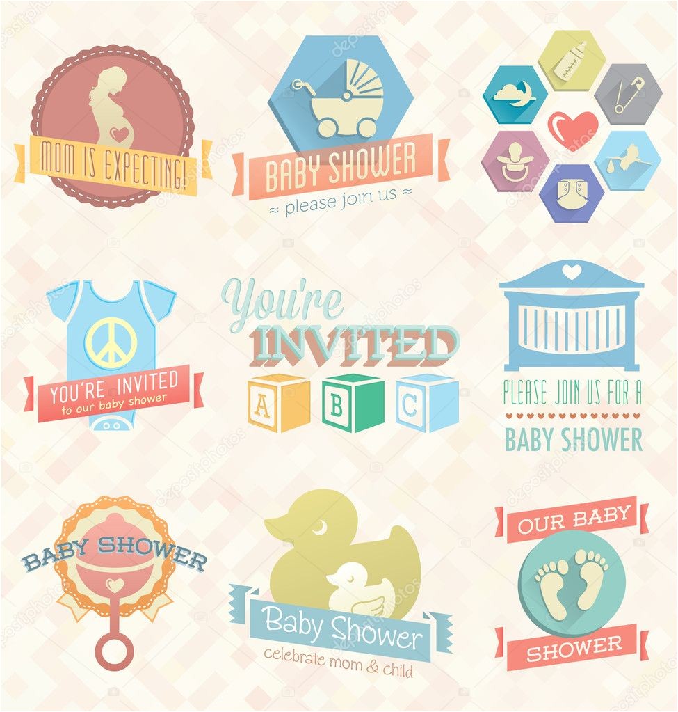Vector Set Baby Shower Invitation Labels and Icons from baby shower invitations vector