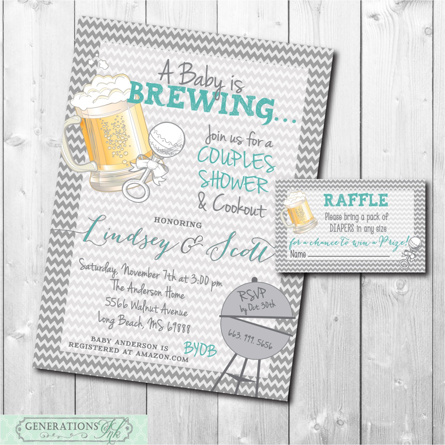 Couples Baby Shower Invitation and Diaper Raffle Ticket from baby shower invitations with diaper raffle wording