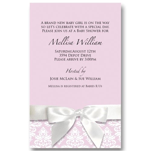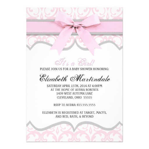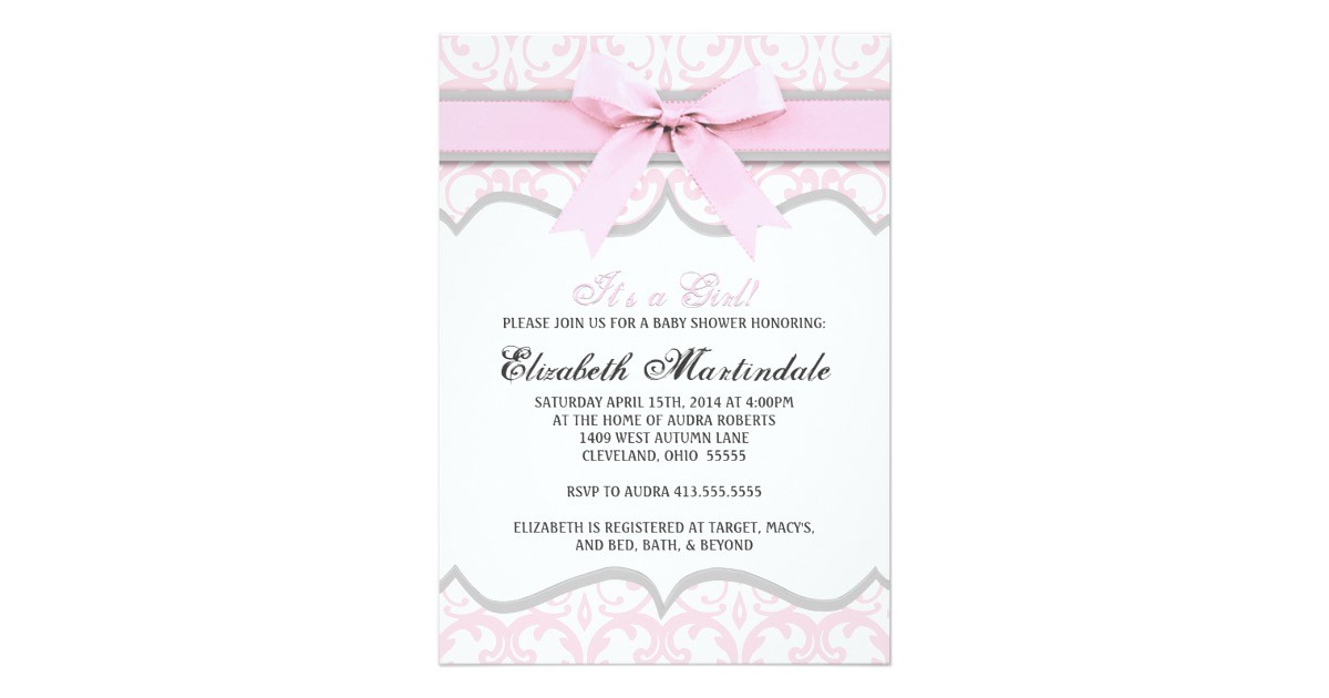 Damask Ribbon Pink Baby Shower Invitations from baby shower invitations with ribbon