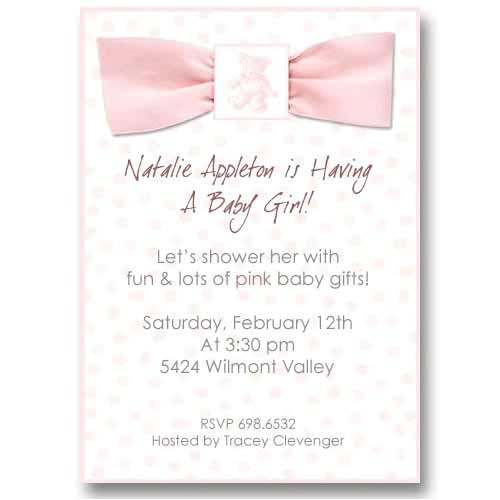 Pink Baby Bear Ribbon Baby Shower Invitations from baby shower invitations with ribbon