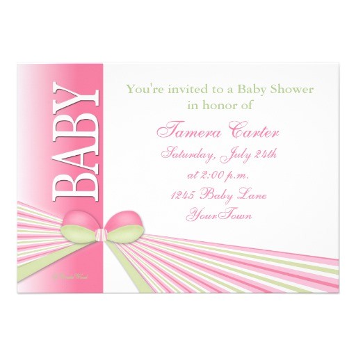 Ribbon & Stripes Baby Shower Invitation with Bow 5" X 7 from baby shower invitations with ribbon