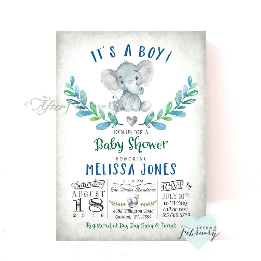 Elephant Baby Shower Invitation Boy Baby Shower Invitation from baby shower invites with elephants