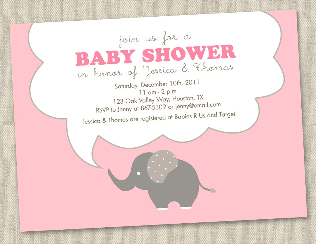 Pink Elephant Baby Shower Invitations baby girl by from baby shower invites with elephants