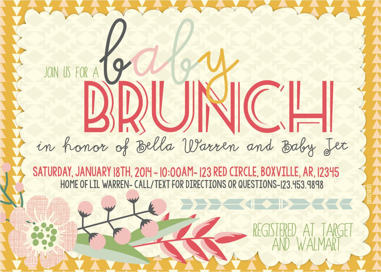 Baby Shower Brunch Invitation Simple Boho Gender from baby shower luncheon invitation wording