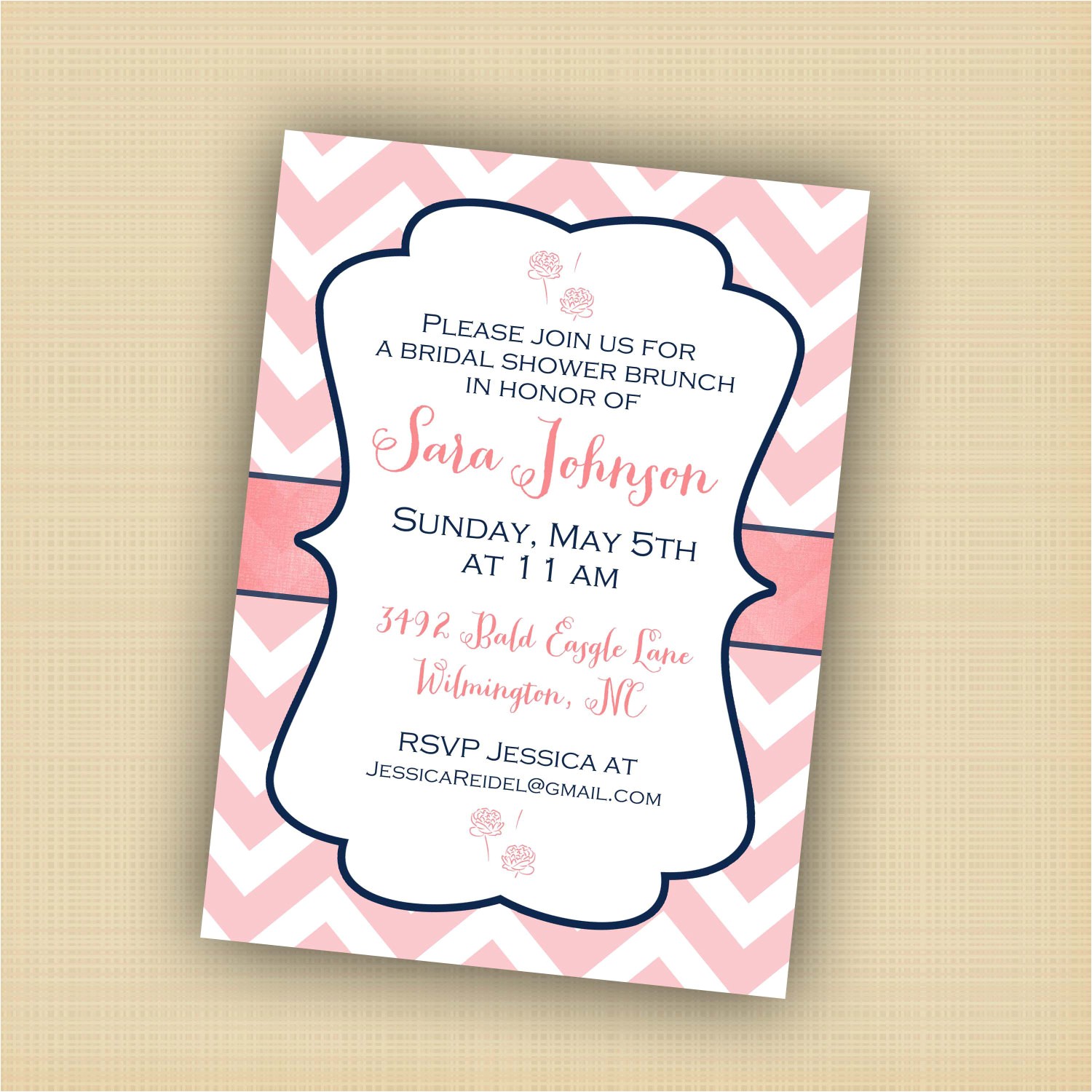 Pink Chevron Invitation Bridal Image from baby shower luncheon invitation wording