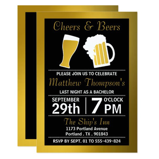 cheers beers black gold bachelor party invitation from Bachelor Party Invitation Template