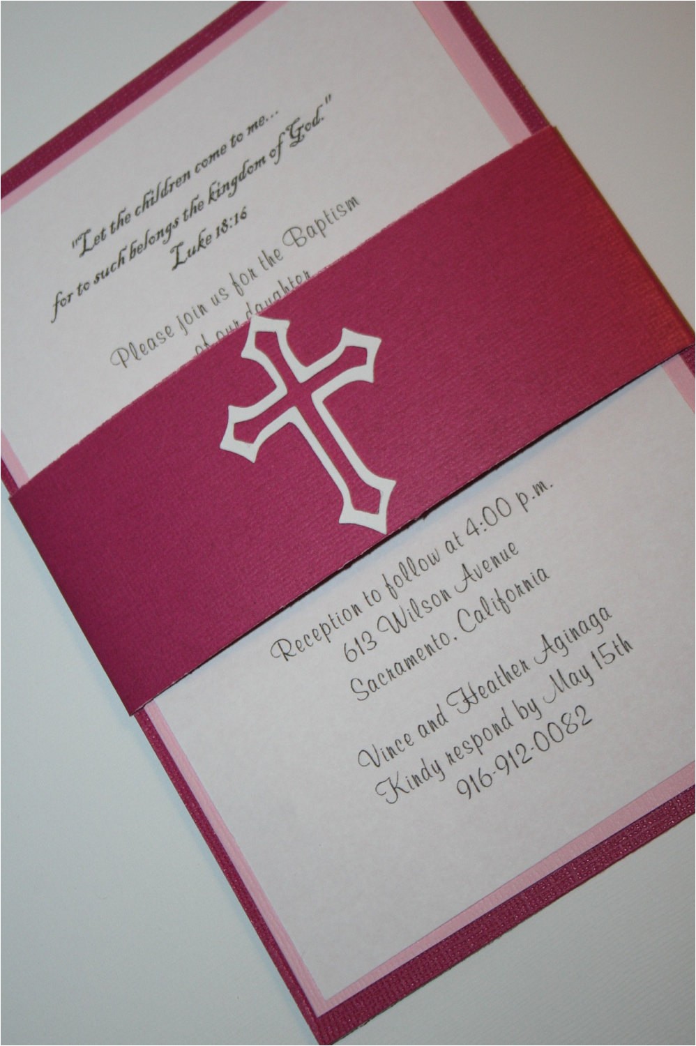 Pink Baptism Invitation with Cross Christening by from baptism invitations etsy