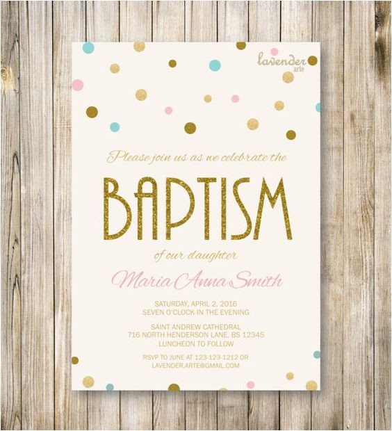 BAPTISM Invitation Pink Blue Gold Glitter by LavenderArte from baptism invites etsy
