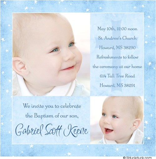 Finally, as to the third question, the invitations should look personal, informal, and patently child-like. Infant baptisms craving not be any more formal than a homemade collage of baby pictures like glitter and stickers pasted approximately it. That’s an analogy, of course, but infant baptisms are the least formal of every popular celebrations. They’re much less formal than a Christening and hardly even worth sending out invites for. Everyone at your church will already be there, of course. However, if you’re hosting the thing elsewhere, it’s indispensable that the clergy, church members, friends, and associates every get invites. There’s just no explanation not to. Afterward, you can every go out and have lunch as a exaggeration of celebrating. The invitations should inform people of the following: the baby’s name, a photograph of the baby, and the day, date, time, and area of the infant baptism.