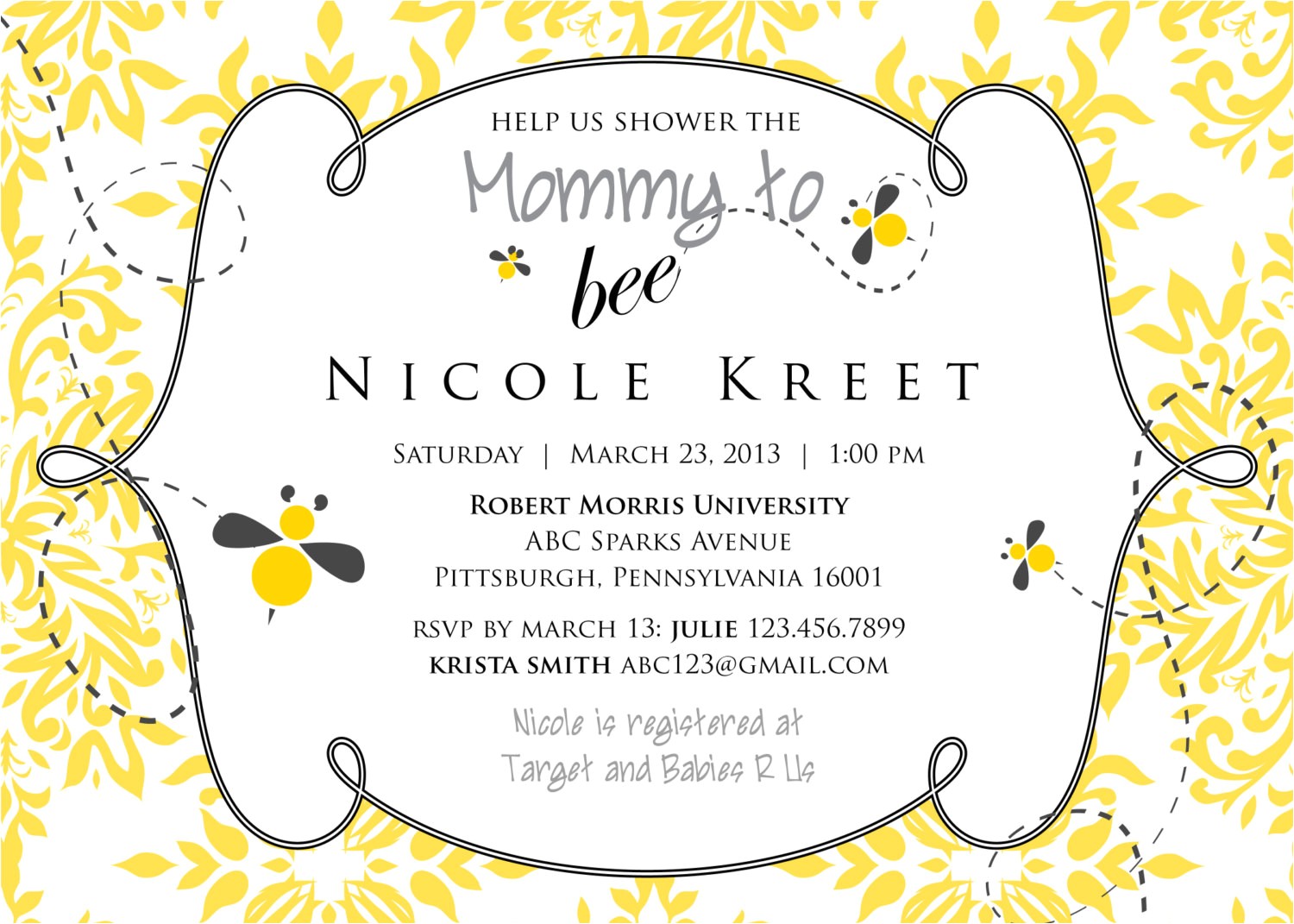 bee themed baby shower invites sample: