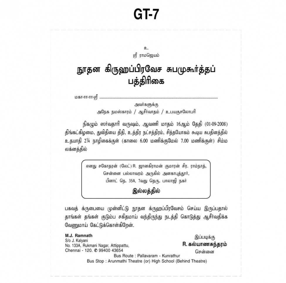 Birthday Invitation Format In Tamil sample: