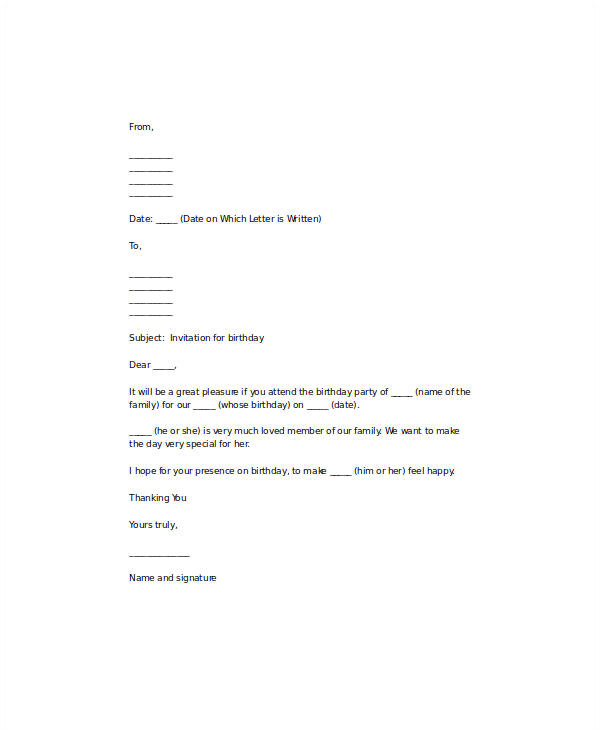 birthday invitation letter free sample letters from Birthday Invitation Letter Format In English