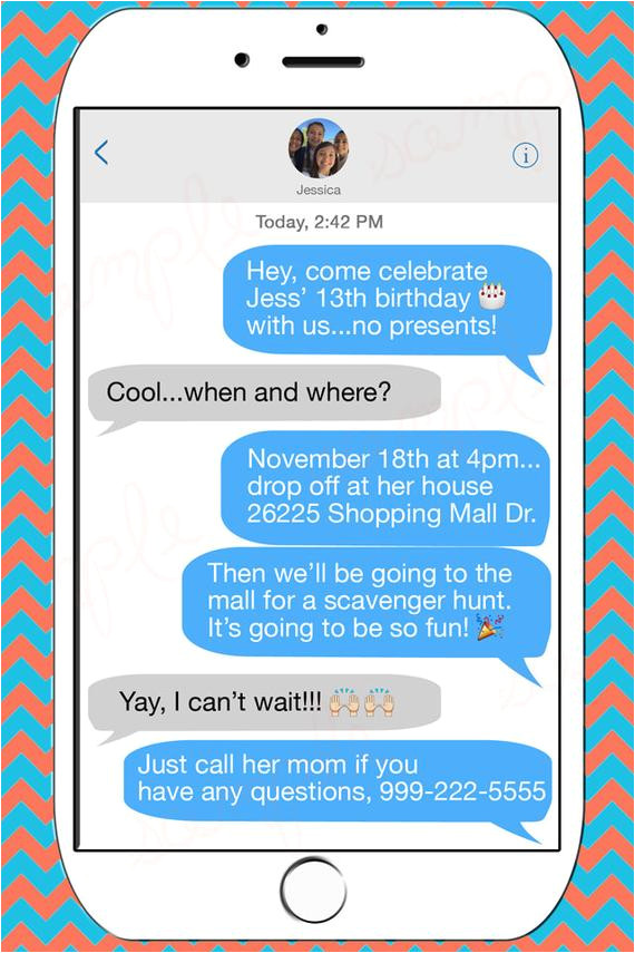 customizable iphone text message birthday invitation printable from Birthday Invitation Sms Format