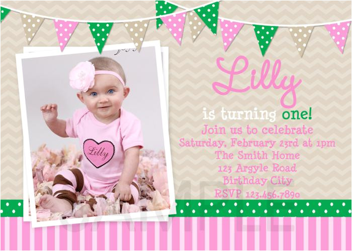 baby girl first 1st birthday photo invitation pink and from Birthday Invitation Template Baby Girl
