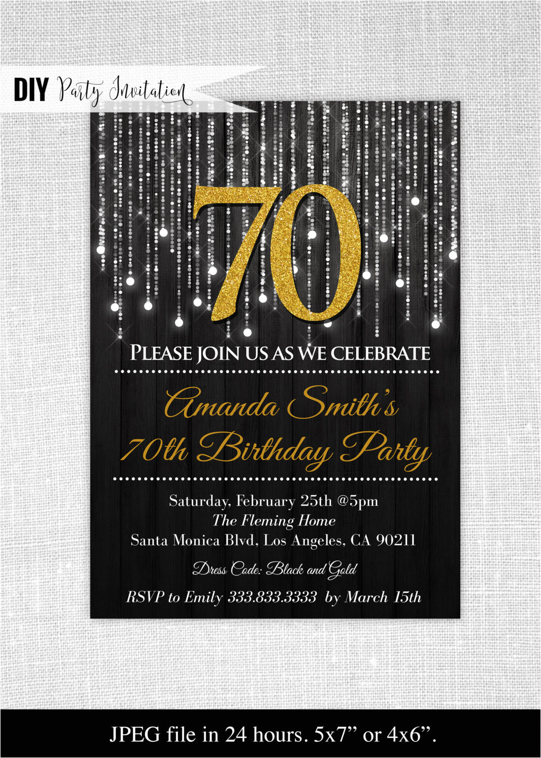 black and gold 70th birthday invitations by diypartyinvitation from Birthday Invitation Template Black And Gold