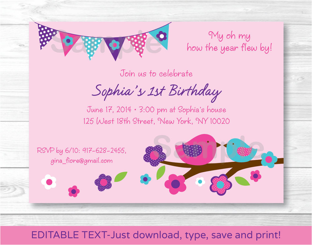 spring bird printable birthday invitation editable pdf ebay from Birthday Invitation Template Editable