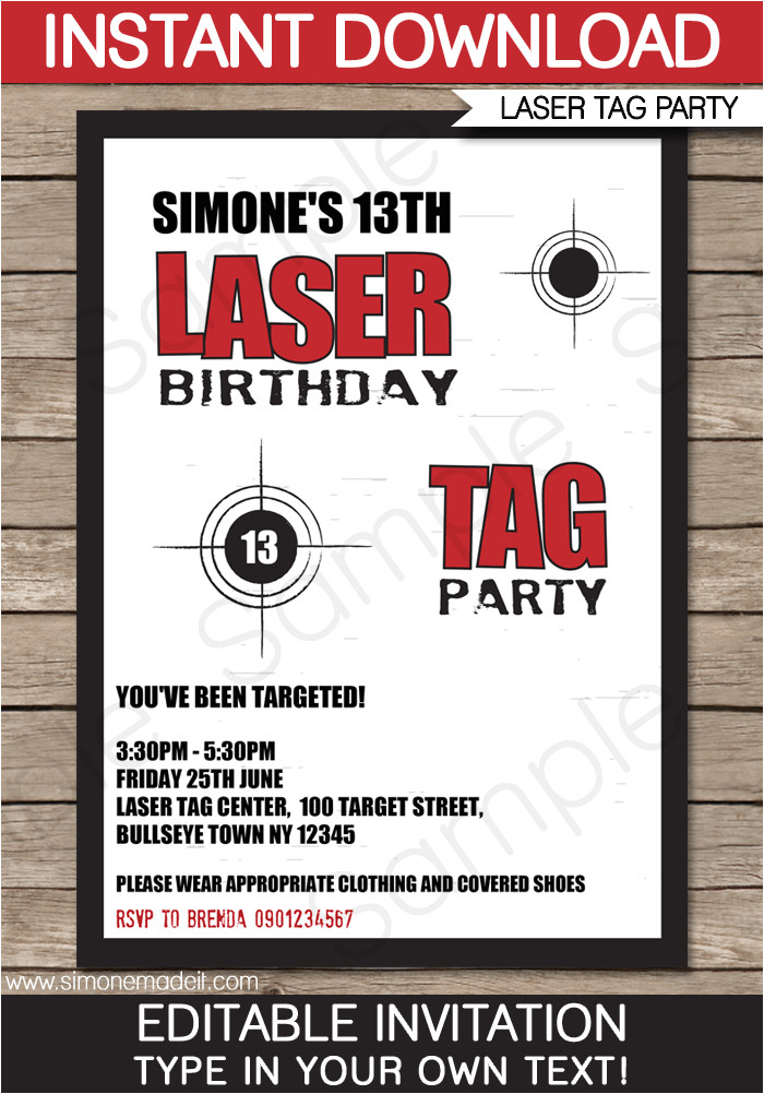 laser tag birthday invitation printable or printed laser from Birthday Invitation Template Laser Tag