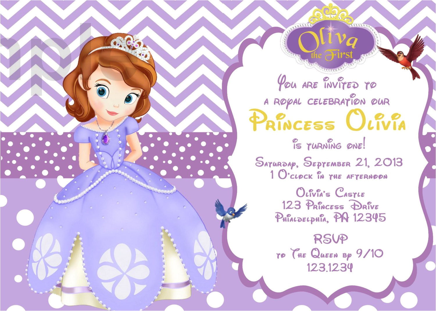 Birthday Invitation Template Sofia The First sample: