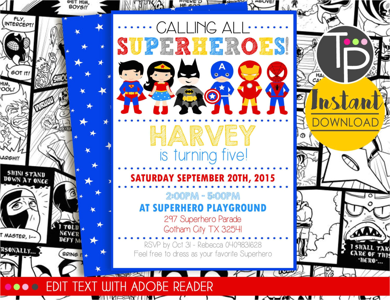 superhero party invitation instant download superhero from Birthday Invitation Template Superhero